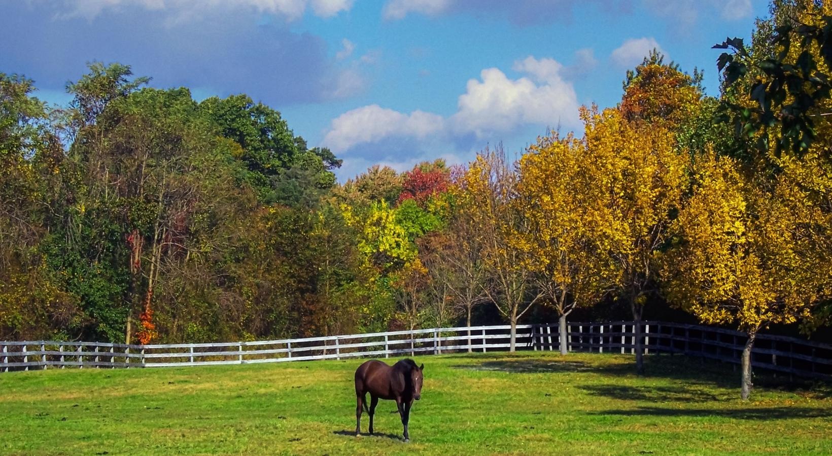 • a horse in a fenced pasture