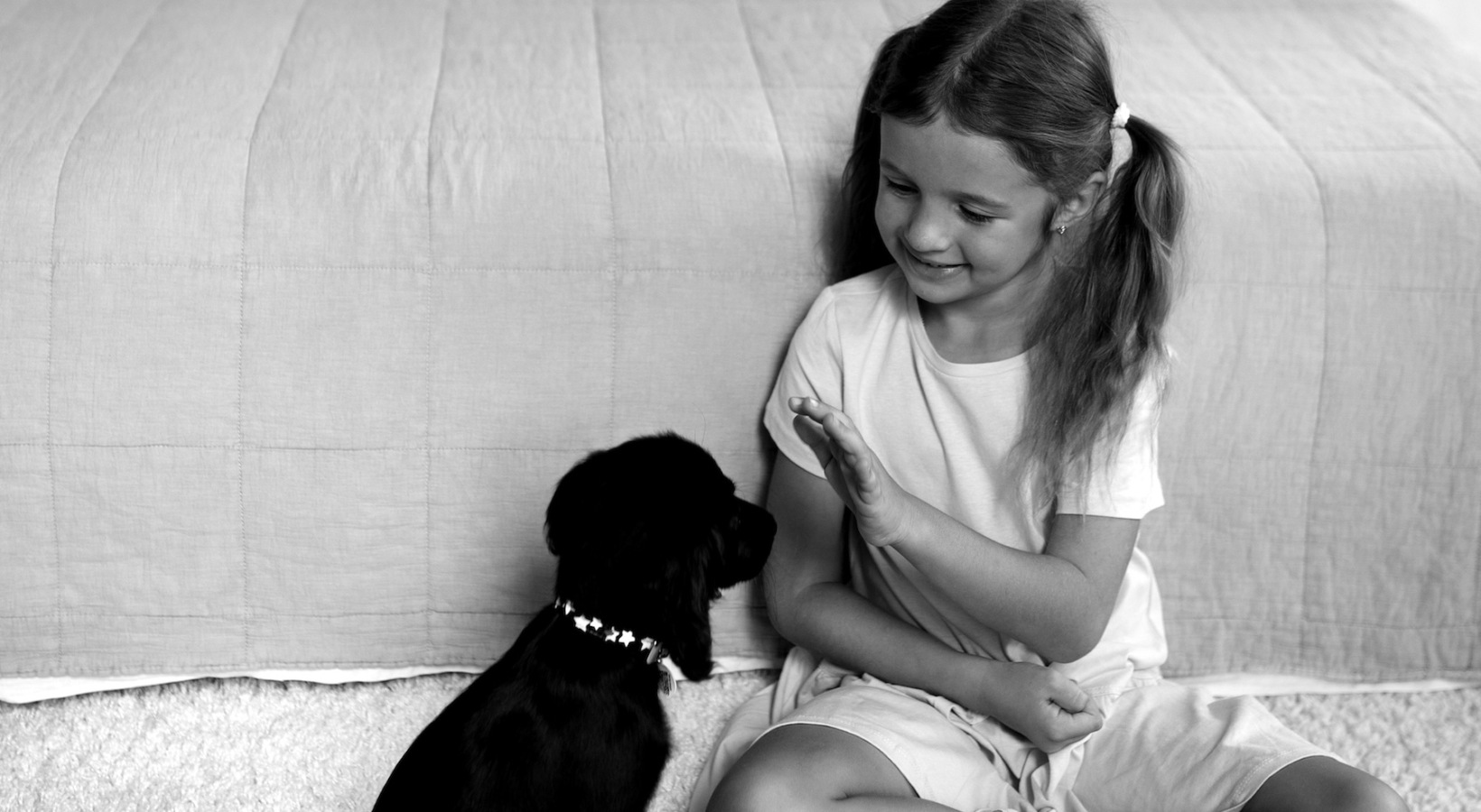 • a child playing with a dog