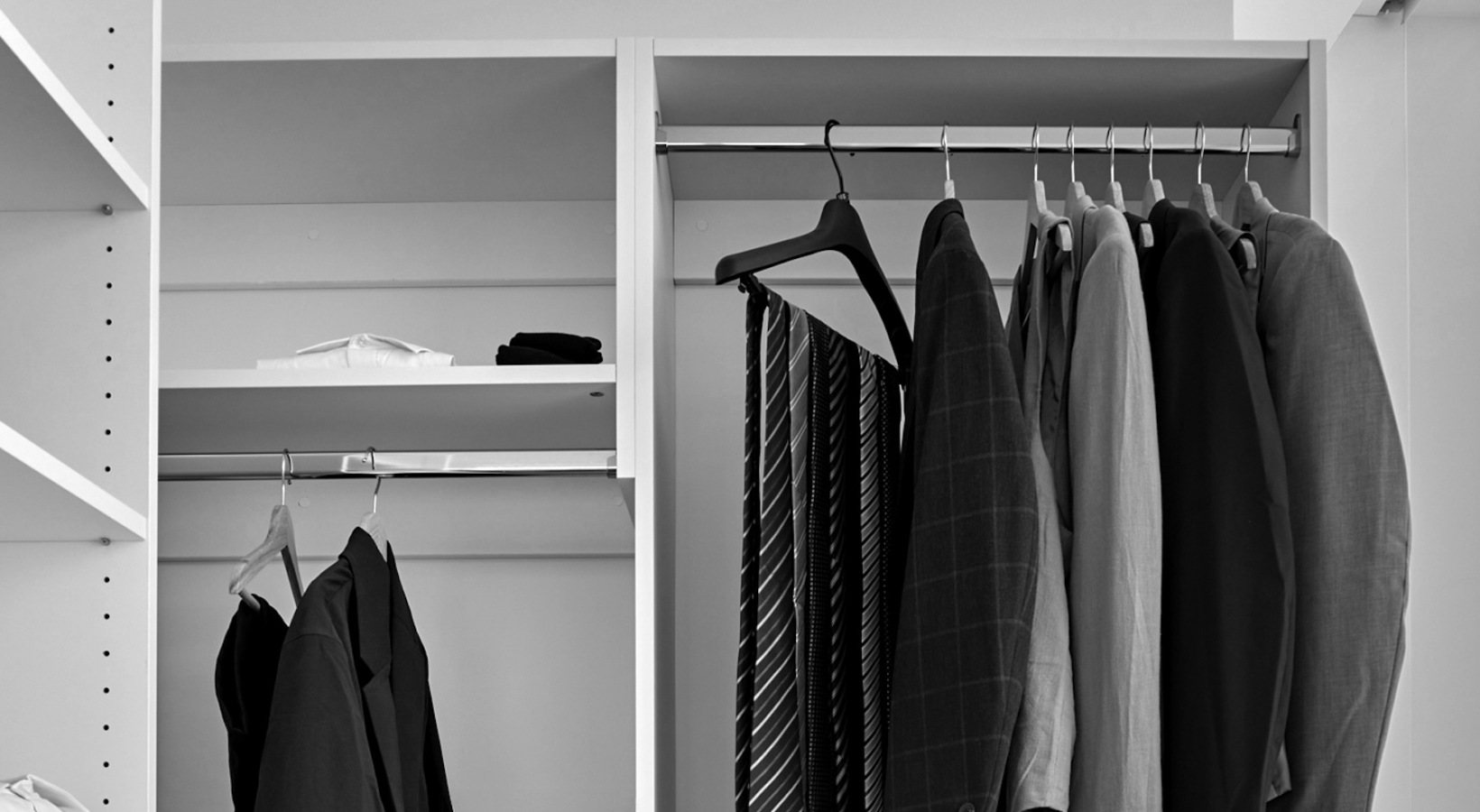 • clothes hanging in a closet