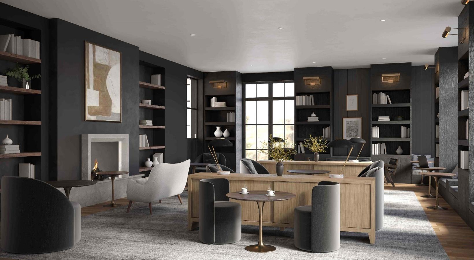 • a room with a table and chairs