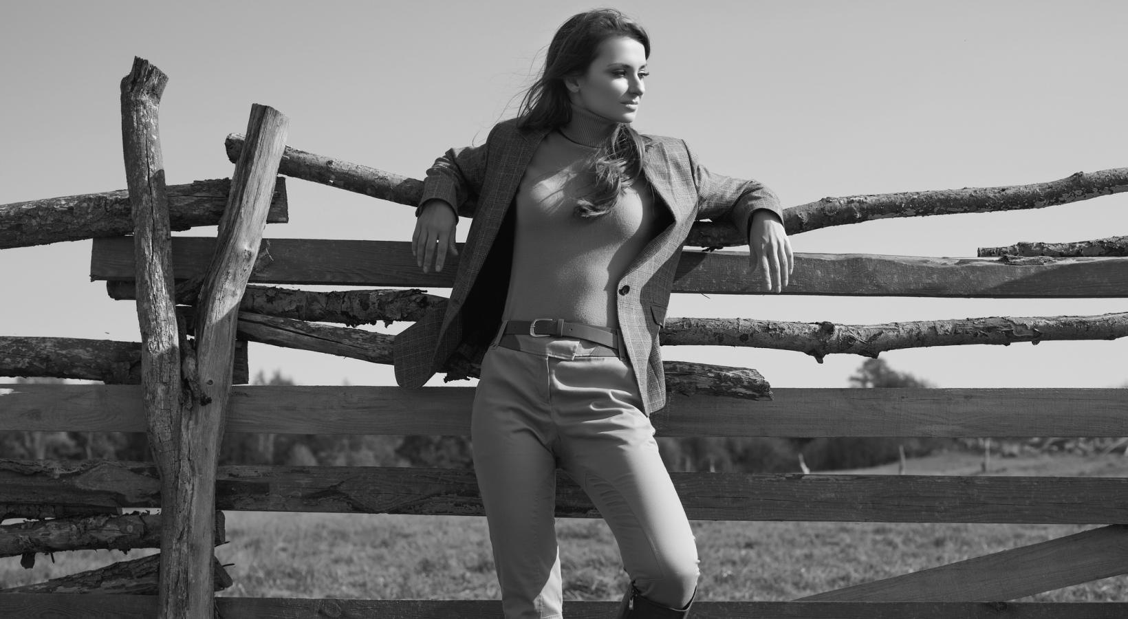• a woman leaning against a fence