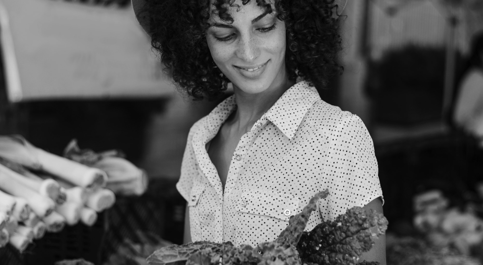• a person with a hat at a farmers market